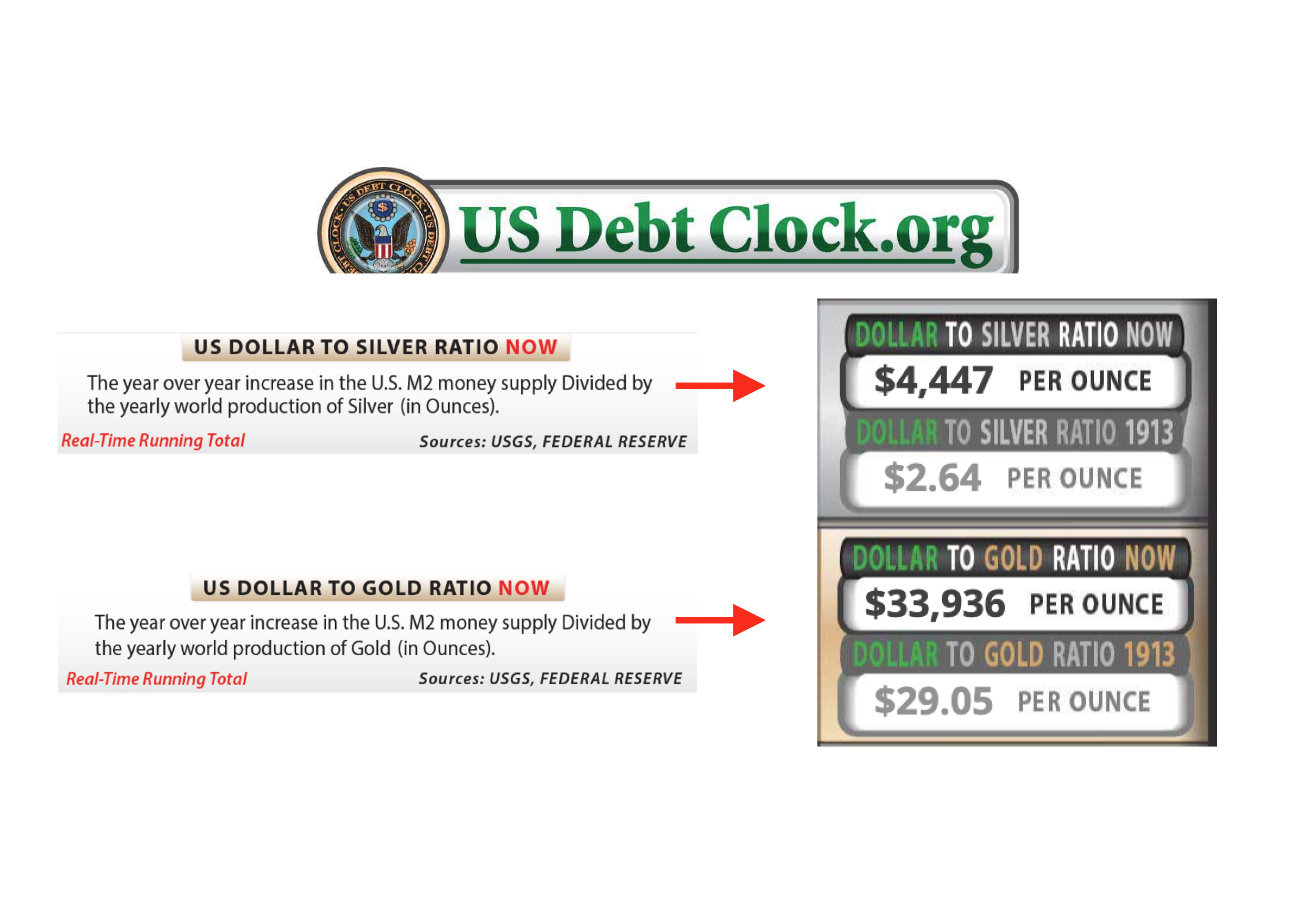 And we now have hyperinflationary silver and gold price targets shown on the Debt Clock website in real-time.