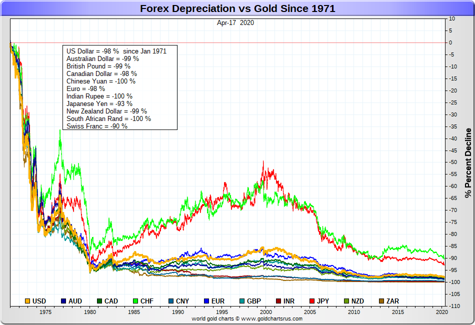 I hope you like price charts, because we are about to look at the world's 20 largest fiat currencies traded encompassing over 96% of collective notional FX trading volumes with the fiat currencies we are about to compare to gold.