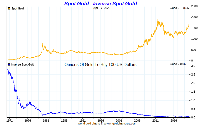 The full fiat currency the Federal Reserve and US Treasury consistently remind us on prime time tell-a-vision, is one they claim ability to issue to infinity. That with mere keystrokes, and now more than ever in size and scale, has since devalued down nearly -98% versus gold bullion in less than 50 years of time, since the start of the year 1971 gold price.