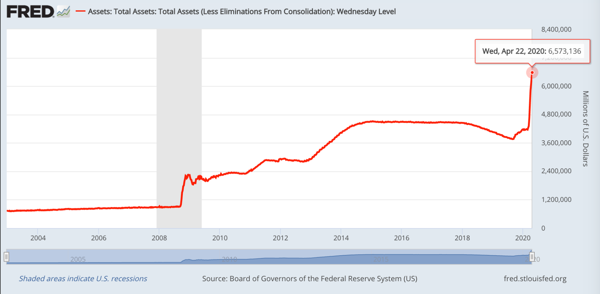 The ballooning balance sheet of the Fed is now past $6.5 trillion and on course at this rate to pass $10 trillion by the end of July 2020.